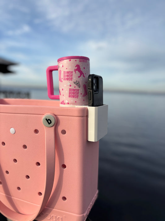 Cup and Phone Holder for Bogg Bag and Simply Southern Totes-White